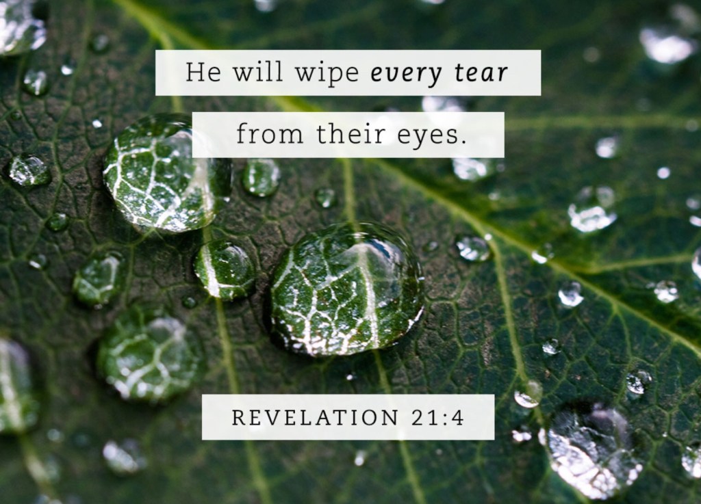 And Revelation describes a future day when the Savior will “wipe every tear” from each of His children’s eyes (21:4). Jesus won’t minimize their pain, but truly see and care for each person’s unique grief—while inviting them into the new, healing realities of life in His kingdom, where there is “no more death or mourning or crying or pain” (v. 4). Where healing water will flow “without cost from the spring of the water of life” (v. 6; see 22:2).