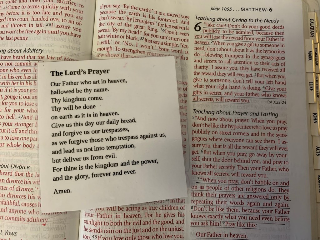 One prayer I think is important to learn is the Lord’s Prayer. This is the prayer Jesus taught His disciples after they asked Him how they should pray.